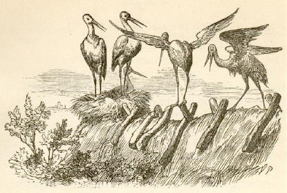 "Men han, som begyndte med at synge, den slemme, hæslige Dreng!" skrege de unge Storke, "hvad gjøre vi ved ham?"