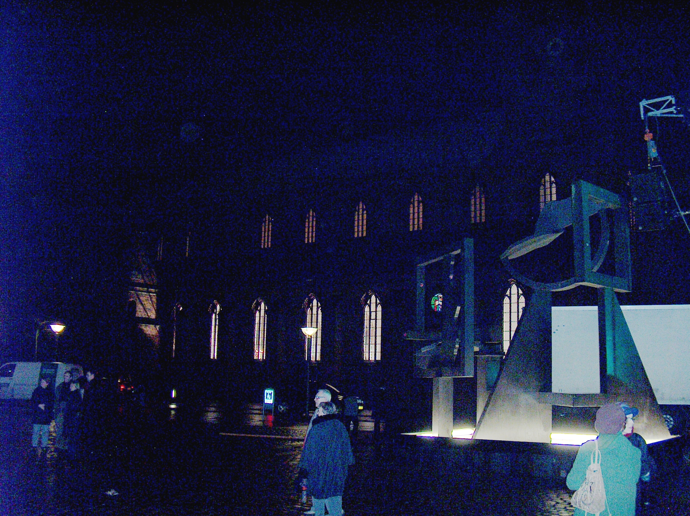 Robert Jakobsen jernskulptur på Flakhaven var også illumineret