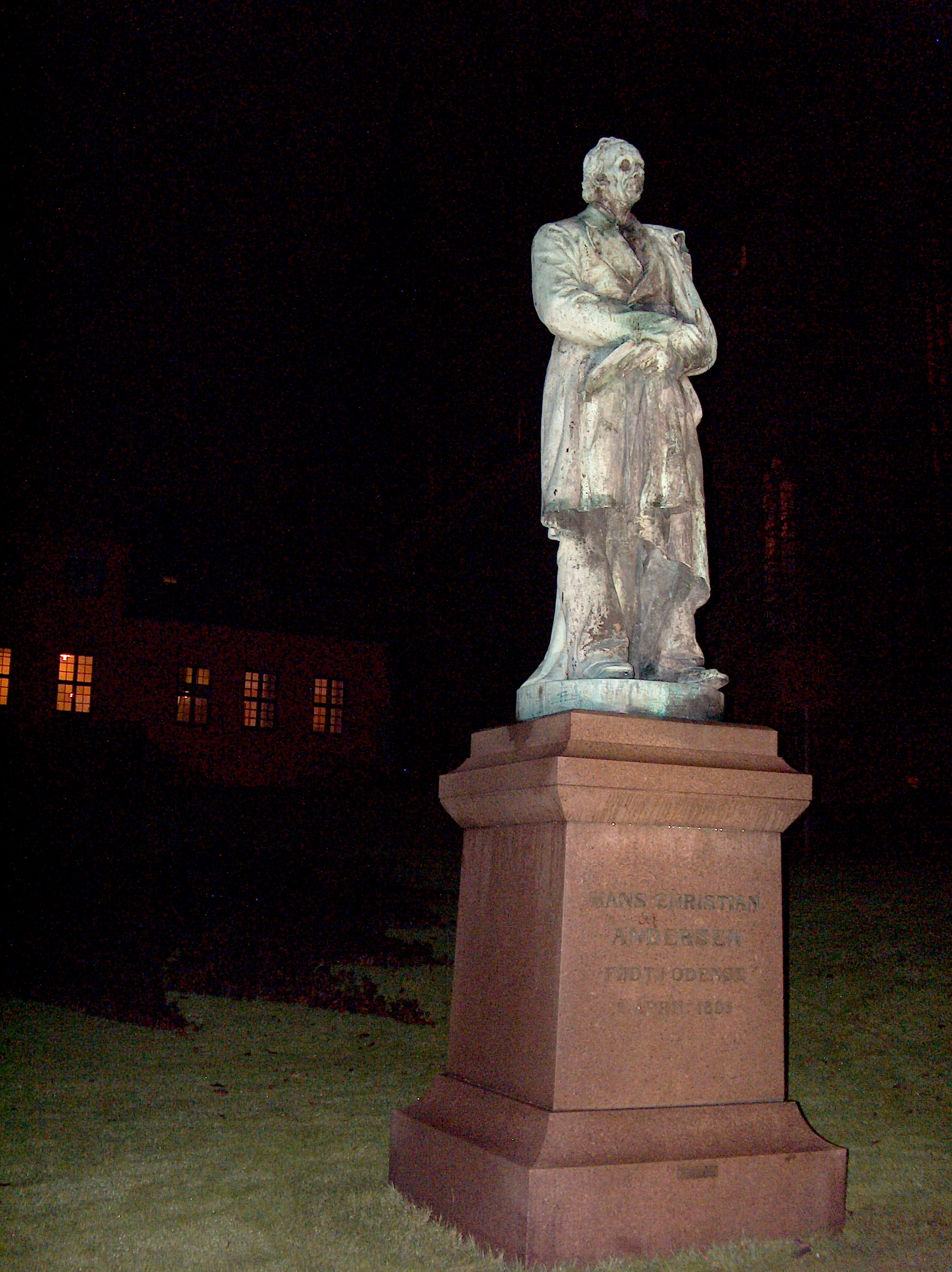 Illumination af bronzeskulptur af H.C. Andersen af billedhuggeren