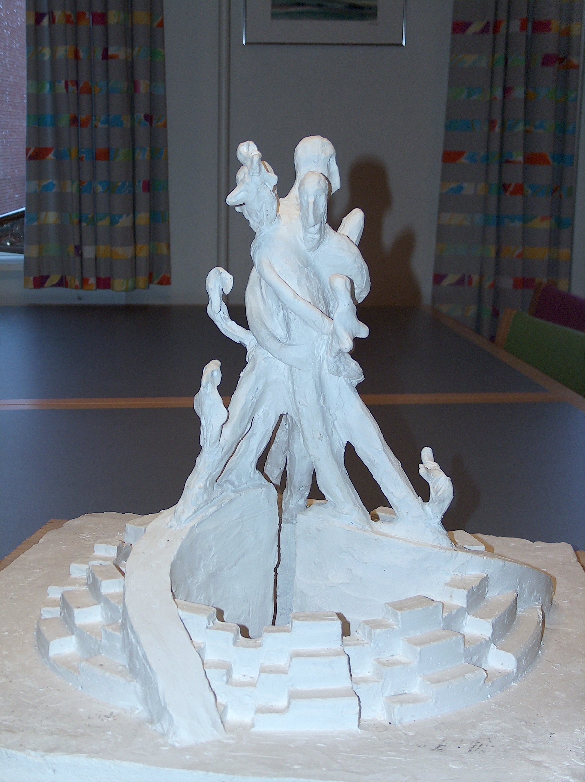 Odense Banegårdsplads i anledning af Andersens 200 års fødselsdag i 2005. Nedenfor bringes foto af en tidlig model af skulpturen.