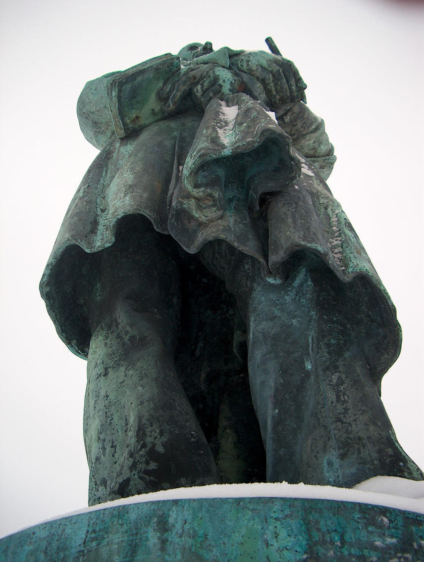 H.C. Andersen 1. januar 2003 i Eventyrhaven i Odense med legende børn omkring sig . En vinterdag med sne og frost .