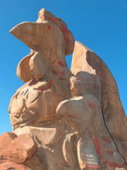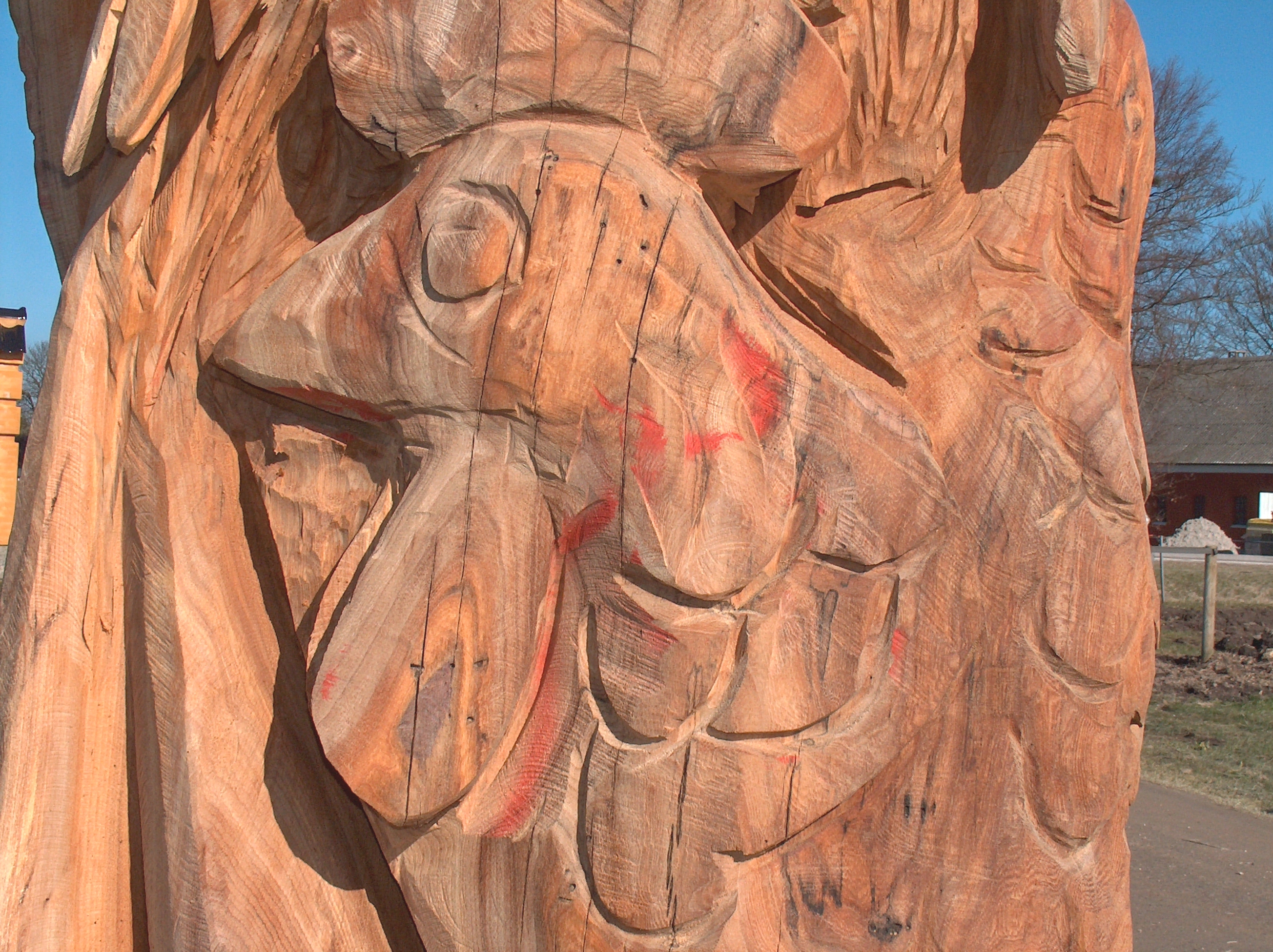 har gårdejer Jens Harrekilde på alleen op til gården fået skabt træfigurer