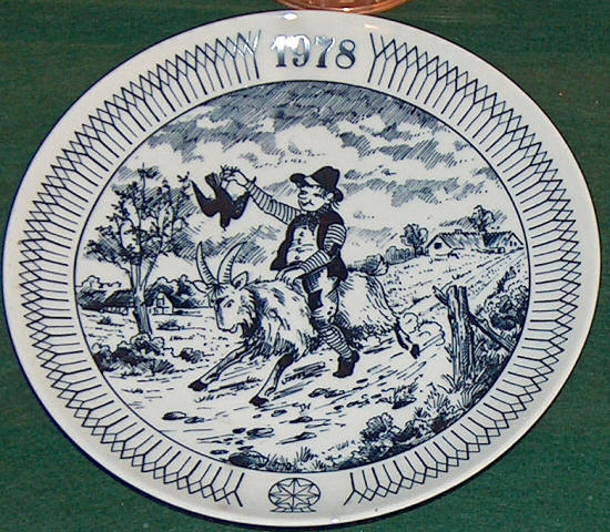 Platte i porcelæn med Klods Hans motiv 1978. Ukendt kunstner .