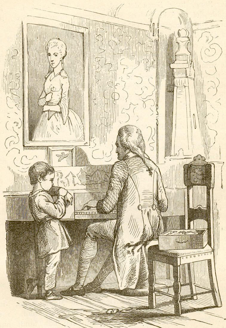 Alle I Børn stode foran Bordet og sang eders Psalme, som I synge den hver Morgen; I stode andægtige med foldede Hænder, og Fader og Moder vare ligesaa høitidelige, og saa gik Døren op og den lille Søster Maria, som ikke er to Aar endnu, og som altid dandser naar hun hører Musik eller Sang, hvad Slags det endogsaa er, blev sat ind, - hun skulde det nu ikke, - og saa begyndte hun at dandse, men kunde ikke komme i Tact, for Tonerne vare saa lange, og saa stod hun først paa det ene Been og hældede Hovedet heelt forover, og saa paa det andet Been og hældede Hovedet heelt forover, men det vilde ikke slaae til. I stode meget alvorlige, Allesammen, skjøndt det var nok svært, men jeg loe indvendig og derfor faldt jeg ned af Bordet og fik en Bule, som jeg endnu gaaer med, for det var ikke Ret af mig at lee.