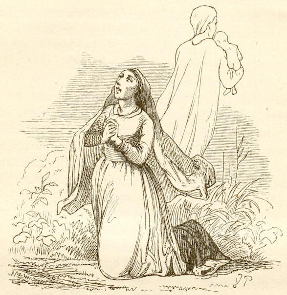 Der sad en Moder hos sit lille Barn, hun var saa bedrøvet, saa bange for at det skulde døe. Det var saa blegt, de smaa Øine havde lukket sig, det trak saa sagte Veiret, og imellem med et dybt Drag ligesom om det sukkede; og Moderen saae endnu mere sorrigfuld paa den lille Sjæl.