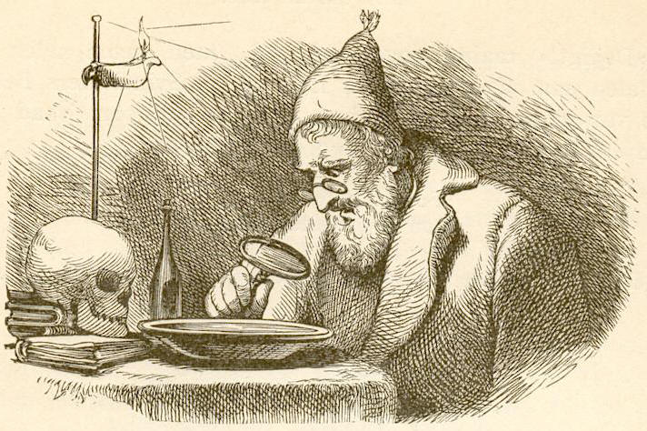 Nu sidder han en Dag og holder sit Forstørrelsesglas for Øiet og seer paa en Vanddraabe, der var taget ude af en Pyt Vand i Grøften. Nei hvor det kriblede og krablede der! alle de tusinde Smaadyr hoppede og sprang, trak i hverandre og aad af hverandre.