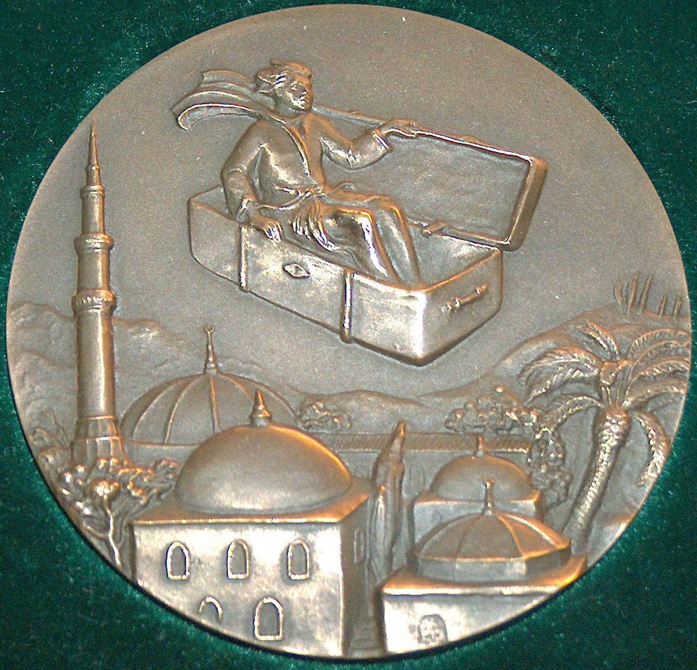 Udført at Billedhugger og medaillør Harald Salomon (1900-1990)Han har bl.a. udført et relief af H. C. Andersen ved indgangen til H. C. Andersen-skoven i Israel 1975 samt et portræt af H. C. Andersen ,som er indmuret H. C. Andersen-skolen i Bruxelles 1977. Gave fra Fyns Numismatiske Forening i anledning af 100 året for H.C. Andersen død.