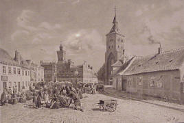 Albani Torv i Odense, set fra øst. August Behrends, 1848.