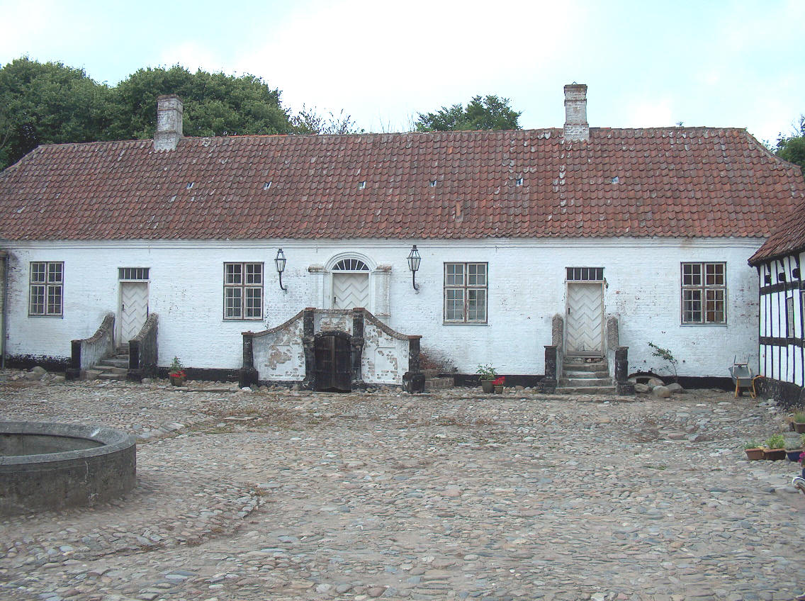 1642. Ide Langehuset mod nord er med bindingsværk. I fredeligere tider kunne man indrette sig i den første etplans, enfamilies bolig med kæmpestor bageovn og gruekedler .